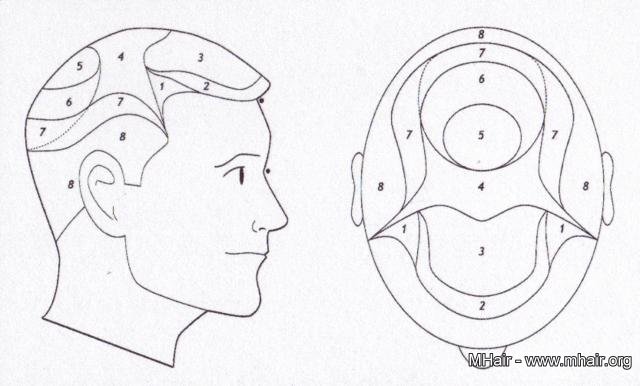 实际上呢,我看到A朋友的头顶发量也有些稀疏了(图中4、5、6区),但因为他一直认为自己的脱发区域只有前额,不太愿意面对自己脱发范围比自己认知的还 来的广。我又不愿意告诉他真相,伤及他的自尊,所以仅能暗示他,要多注意自己头顶的发量变化,希望他能够早日发现头顶也是需要拯救的区域。