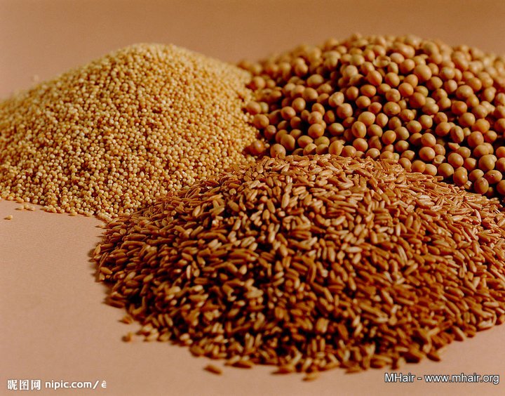 營養豐富,種類繁多的食物能給頭髮帶來滋潤。同樣,每天微量元素的補充提供人體必須的營養物質,這些營養物質也 給健康的頭髮製造了一個「茁壯成長」的環境。尤其,維他命B在保證紅細胞的供氧對頭髮的營養支持方面起著重要的作用,維他命B-12有助於促成新的頭髮細 胞再生。