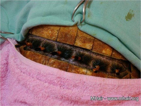 利用特殊细小的镊子多技术员(非医师),将发株一株一株很仔细地挤压植入,如果技术不好,较容易会伤害到非常贵重的毛囊。还有在植入时须注意头发生长的方向, 需多位技术员配合仔细地挤压植入,因此须注意控制发流。
