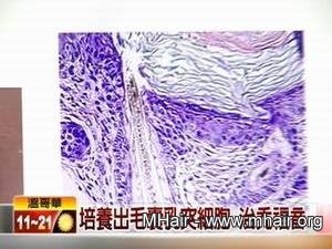 织,最后再把微组织植回人体头皮,整个过程大约30天,在动物实验里被植入微组织的老鼠裸皮,大约两个星期的时间就能成功长出新的毛发。