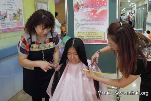 主办这次活动的卫生局健康照护科长郭姿莹,也由夫婿宜兰警分局副分局长廖志明代为剪下留了将近三年的头发。她 说,癌症患友比较需要真发所制成的假发,戴起来会比较舒适,希望透过捐赠活动募集头发帮助癌友们;但捐发者也有限制,捐出的头发至少要二十五公分以上,且 是没有染过的直发,越长越好运用。