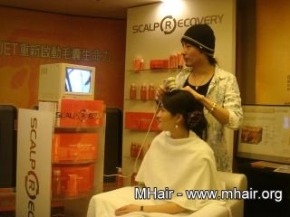 42岁的舞蹈家叶小姐因为工作压力大,加上长期吹染整烫头发,头皮不但容易出油,也出现掉发问题,经检查是因为 长期不当整发造成头皮阻塞,引起毛囊缺氧中毒,经医师以注氧技术调理后,让叶小姐的头皮又重新回覆健康的状态;医师表示,头皮注氧的观念在欧美国家已经行 之有年,以非侵入式的、利用高压注入头皮新鲜氧,可促进头皮新陈代谢,使毛囊健康并达护发、养发效果。美容仪器顾问王又正说,注氧技术主要针对头皮毛囊受 损,尤其是经常吹整染烫的人或毛囊坏死者,皆可透过注氧仪使头皮毛囊细胞活化,而且单纯供给头皮氧气,因此不用担心会产生像是发剂类商品带来的过敏等副作 用。