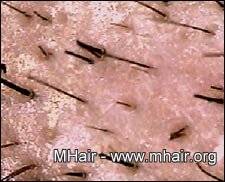 这项 检验是用动态影像显微镜来测量每平方公分内的头发数量,简单的说,就是用高倍数的放大镜来观察头发密度。我们可以用这样的方式来知道你整个头皮上头发的数 量是不是低于正常值。我们也能利用这个测验来判定你头顶上的头发有没有比两旁或后面的头发少。用这样的方式,我们可以清楚的分别你是属于弥漫型掉发或明显 的雄性秃。
