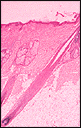 纵向切片与横向切片有相同的作用,但是比较可以了解发根处的发炎现象与瘢痕形成的进展。