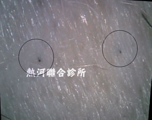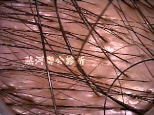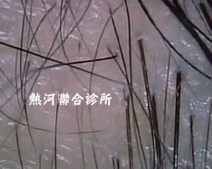 雄性秃之头发检测显现粗细不一的毛根萎缩
