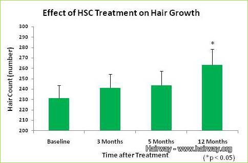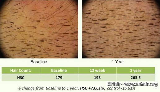 去(长的头发很快还回去的意思)。有初步证据显示,HSC的效果是确定且持久的。此实验样本数24个,采双盲、安慰剂控制评估、安全的注射方式。定量评估