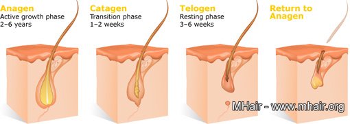 首先,我们来 认识‘掉发’的意义,掉发有什么好谈?不就是掉头发吗?是的!但掉发对于很多人来说,会认为‘掉发’就是头发掉了且‘不再生长’;其次,会误以为,掉发就 表示‘头发会越来越少’;上述的想法,会让很多朋友在治疗过程中,因为无法在一两个月健倒掉发量减少,而感到焦虑,对自己失去信心,甚至会放弃正确的治疗 方式。正确的看待掉发,还是一样回归到最基本的毛发生长周期,这是头发掉落与头发生长的重要模型,但不少年轻朋友一心想找寻产品,却忽略了要先了解这简单 的毛发生理学。简单复习一次: