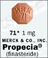 事 实上Finasteride就是一种5α- 还原脢的抑制剂。Finasteride是由美商默沙东药厂研究出来的药物 ,商品名为Propecia,美国FDA在1998年1月正式批准该药上市,用以治疗雄性秃;台湾卫生署也在1999年9月准其在台上市,商品名称为“保康丝(柔沛)”。针对雄性秃的治疗,现有的商品均未能针对雄性秃之生成机转有明确之疗效。“保康丝(柔沛)”可藉抑制5α- 还原脢降 低DHT的浓度,而有效的逆转秃头的过程,不但预防头发进一步掉落,而且可促进秃发部位头发之再生长,是唯一口服有效之雄性秃治疗药物。根据一跨16国的 临床研究,皮肤学界在长达3年对1879名轻度到中度雄性秃的患者,年龄在18到41岁间,每天服用Finasteride 1mg,有83%服用者在2年后,没有继续掉发,研究也进一步证实有66%服用者头发的数量也明显增加。目前皮肤医学界公认治疗雄性秃有效之药物,除了 Finasteride “保康丝(柔沛)”之外,Minoxidil外用剂 (2%或5%) 也是有效,最近更有研究报告显示,口服“保康丝(柔沛)” 加上外用Minoxidil对雄性秃疗效具有加成作用,效果更好,这些都是雄性秃患者的福音。(也是迄今经美国FDA认可,有效治疗雄性秃的两个药物:即 口服Finasteride和外用Minoxidil)。但由于正常头发生长周期的缘故,雄性秃的治疗至少都必须经过三个月或更久的时间,才能看到明显的 效果。