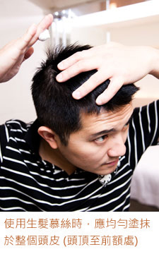调整用法,很可能白费力气。使用后无需特别按摩,但如果头发较长,使得生发产品附着在头发而非头皮,则可用手辅助将生发产品推抹进头皮,就不必担心生发成