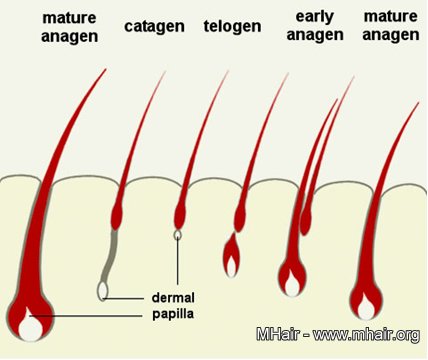 无疑地,充足的氧气供给与主要的氨基酸是维持发干生长的关键。但这需要血液。许多实验中都显示,毛囊中血流量的增加与血管的形成可以改善并且维持头发生长,缺少这些要素头发生长就会停止。