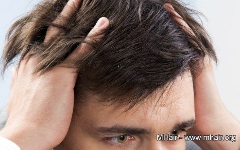 雄性 秃是因雄性素造成毛发变薄的一种遗传性疾病,男女均可能发生,只是在男性掉发常会变成秃头,女性情况则较轻微。头发开始变薄,发生年龄两性均约在 12-40 岁,且大多发生在50 岁。以男性雄性秃为例,最常见症状为前额发线逐渐往后退,且前额到头顶的头发越来越稀疏,头发最后会掉到只保留枕骨和顶骨外缘的部分。女性雄性秃的典型掉 发型态是集中在头皮中心部分,但不包括额骨和颞骨的发线,也很少会头发全掉光的,但停经后的妇女则有机会变成男性形式的雄性秃。