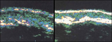 SRCPs 结合清除角质与各种降低皮肤损害的方式,让皮肤更新与再生。SRCPs有助于刺激新的毛细血管形成,增加胶原蛋白、弹力蛋白、保湿蛋白多醣和葡萄胺聚糖的 合成。照片的左边是一个59岁的妇进行皮肤超音波扫描,右边是以铜胜肽治疗一个月后的相同皮肤。白黄色的地区是超音波显示皮肤的区域,因为SRCPs可使 细胞结合更紧密,增加大量的胶原蛋白和弹性蛋白,使皮肤更有紧致。这就是一个对抗皮肤因老化而松弛与变薄的过程。SRCP面霜可以结合使用如果酸、A酸、 水杨酸等让皮肤轻度损伤的产品共同使用,可获得更加佳的效果。