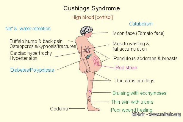 Cushing's syndrome是一种因为人体组织长期处于高度皮质醇之下所导致的荷尔蒙失调疾病。这个疾病很罕见,通常影响21-50岁的人。这个症状每年影响了将近1500万人。库欣氏症是由什么引起?有的时候是我们所服用的某些荷尔,如Prednisone(治疗类风湿关节炎或哮喘)或是移植手术后的免疫抑制所造成。其他患有这个疾病的人则是因为他们的身体本身制造过多的肾上腺皮质醇。