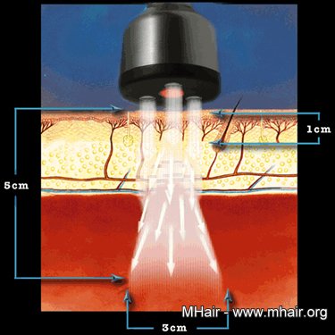 500mW的氦氖雷射(红光,波长638.2nm)、或是远红外线雷射(904nm),对毛囊的毛乳突细胞与毛母细胞所造成的雷射光生物调节或光生物刺激