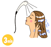 2.先以温水(38℃-45℃),最好是用莲蓬头,具有水柱强度,冲洗头皮3分钟。
