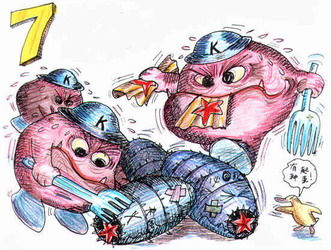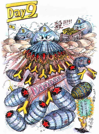 第七天,细胞中能辨识病菌的杀手部队Tk细胞 (也是白血球) 出动,加入战斗,大肆杀敌。