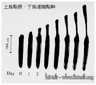 圆形秃,俗称“鬼剃头”,可见到一处或多处的秃发。尤其,若能找到“惊叹号”的头发(靠头皮的一端细),则诊断即可确立。依笔者经验,病患通常是洗头发时,美容院小姐发现的。圆形秃约八成仅发生于头皮,少数发生于眉毛、胡子或是四周的体毛。