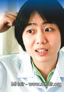 女性则表现为头发稀少干枯,毛发也是慢慢脱落,露出头皮,但很少有形成秃顶的可能。