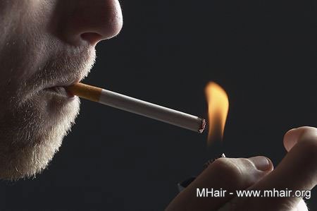 吸烟会影响人体的免疫系统、加速皮肤的老化、影响血液的循环,也有研究显示,吸烟会抑制毛囊细胞的分裂。北医公卫系韩柏柽教授指出,吸烟或吸入二手烟皆有害,根据国外研究,烟内有毒物质除有致癌危机,里头的尼古丁、古丁宁等有害物质会因吸入残留头发内,与造成掉发有关。且吸烟会直接妨碍妇女雌性激素的分泌,可能让雄性秃患者的掉发情况更加严重!