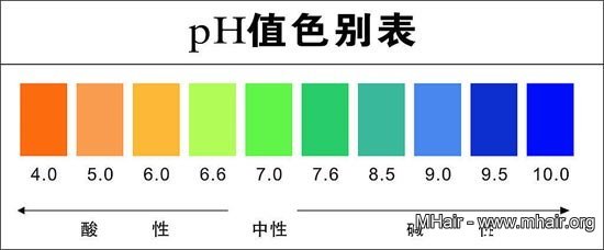 PH是potential Hydrogen的缩写,指的是液体中可能含氢的量。PH值的数字限度0~14,以7为中性,以下属酸性、以上属碱性,有分泌物的皮肤、头发、头皮都有酸碱值。举例来说,纯水的PH是中性的7,而大多人皮肤的PH在5到6.5之间。头皮最健康的生长环境是PH值约4.5至5.5弱酸,一旦过于偏酸或过碱的溶剂接触 到头皮,都会造成刺激。