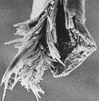 头发 外层覆盖像鱼鳞一样的外皮(图一)。一根健康的头发有层层相叠的外层鳞片。如果鳞片服贴,头发看起来会很有光泽,用梳子梳和鬃刷刷头发就会很滑顺,鳞片被 胜肽混合物黏贴住,像似小学生使用的黏胶。洗发精和肥皂却会移除这个胶质,然后使鳞片松开。高品质润发(护发)乳把受损的鳞片黏贴回去。小量的泛酸(维他 命B-5)也用于帮助胶化。如果鳞片保持打开的状态,它会在发鞘开始撕裂(图二),最后变成发鞘分叉(图三)。