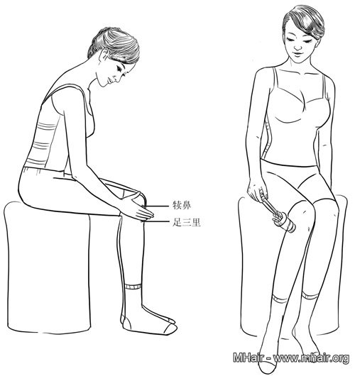 提示:足三里位於膝蓋外側的凹陷處(犢鼻)下3寸。