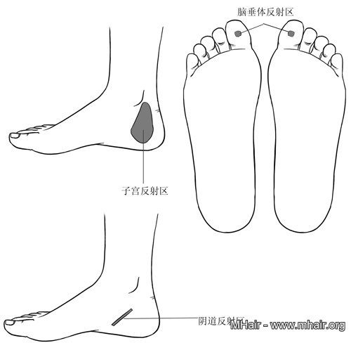 3.睡覺前按摩足底反射區的子宮、腦垂體、陰道等相關區域,每個區域100下。
