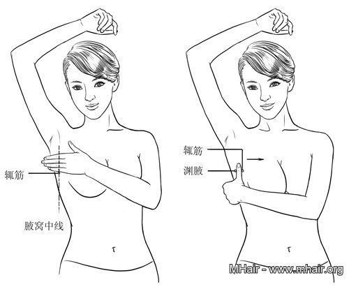 提示:輒筋在腋窩下正中線3寸處,淵液在輒筋旁1寸處。