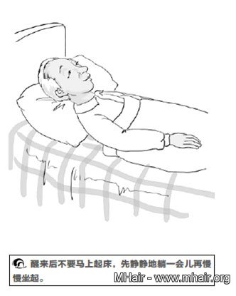 老年人往往覺少,天還沒有亮就醒了,此時正是地氣生發之時。老年人凡是有臟腑不適或者骨節酸痛的,此時一定會有 所感覺,所以不應馬上起床,而應該靜靜地躺著,用意念引導氣血運行,等到太陽照到窗戶了,再慢慢起來。現代醫學研究發現,睡眠時,人體各系統處於半休眠狀 態,清醒後,各系統功能的恢復需要一個過程。所以,醒來後不要馬上起床,先靜靜地躺一會兒,再慢慢坐起。