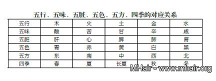 中醫學的理論離不開中國的哲學體系,中國哲學講五行,講木火土金水,中醫學講五臟肝心脾肺腎、五味酸苦甘辛鹹、 五色青赤黃白黑、五方東南西北中、五音宮商角羽……中醫理論認為,五味酸苦甘辛鹹對應著五行中的木火土金水;對應著五臟中的肝心脾肺腎,即酸入肝、苦入 心、甘入脾、辛入肺、鹹入腎。而五味又與四季有著密切的關係,相互對應,即春屬木、夏屬火、長夏屬土,秋屬金、冬屬水,所以在《禮記‧內則》中有上述四季 與五味的相宜關係。