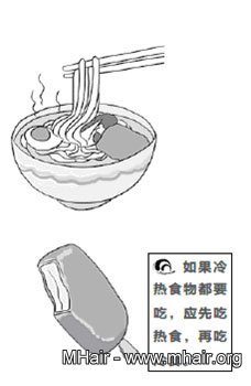 《抱朴子》中有這樣的記載:過熱的食物易傷骨,過冷的食物易傷肺。而冷熱的標準是,熱不要燙到嘴唇,冷別冰到牙齒。如果冷熱食物都要吃,應該先吃熱食,再吃冷食。這是冷熱之道的一方面。