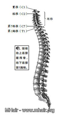 除了第1頸椎和第2頸椎的結構比較特殊,其餘幾節與下面的胸椎、腰椎基本相似,都是由椎體、椎弓、突起(包括橫突、上關節突、下關節和棘突)等基本結構組成的。