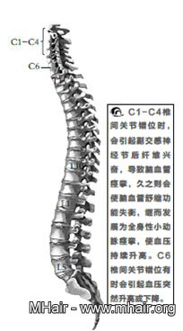 由頸椎問題導致的血壓升高原因何在呢?C1-C4椎間關節錯位時,會引起副交感神經節後纖維興奮,導致腦血管痙攣,久之則會使腦血管舒縮功能失衡,繼而發展為全身性小動脈痙攣,使血壓持續升高。