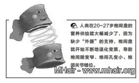 椎間盤退化變質(變矮)屬於人類的正常生理代謝過程。我們前面說過,椎間盤處於兩個椎體之間,它有連接椎體,防 止椎體之間相互摩擦,緩衝壓力,調節脊椎生理曲度的作用。但人類在20~27歲椎間盤的營養供給就大幅減少了。這時它就處於孤立無援的境地,被封閉在兩個 椎體之間,雖身居「要地」,卻要「孤軍奮戰」。最後,因為缺少「外援」的支持,椎間盤就開始不斷地退化變質,導致椎間隙變窄、椎間孔變小、椎間關節錯位。