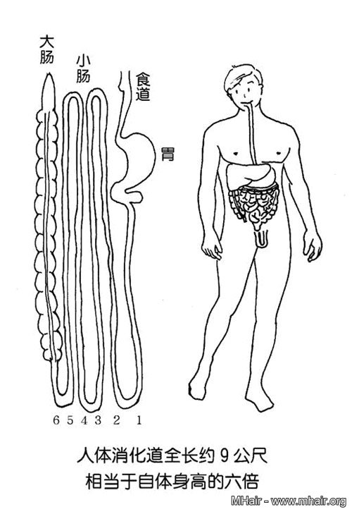 周教授:認真說起來每個人的身高有所不同,消化道長度也就沒有統一的尺度,但是按比例算,它的全長約相當於自體身高的6倍。