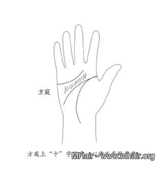 手上的感情線和智慧線之間的區域叫方庭。方庭的區域如果有十字紋,可能是心律失常的徵兆。如果紋路特別多,就要設法調理一下了。