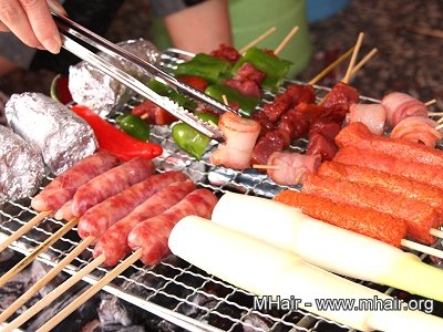 署立台中醫院營養師黃紹萱建議,食材選擇應以均衡、低油脂,高纖維為考量,在肉類方面選油脂量較少的海鮮如蛤蠣、花枝、蝦子等,而雞腿、雞翅油脂量較高,可去皮後再烤,但香腸加工製品最好避免,且肉類最多不要超過2至3份。