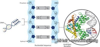 有一些女性也常为掉发所苦,但是又不晓得自己是不是雄性秃,常常为了找不出原因而苦恼。这些问题在最近有了新的解决方法。今年一月份由一群分子生物学的专家,根据这几年来,在雄性秃基因遗传上的分析研究经验,制造出了雄性秃的基因试剂,如下图。