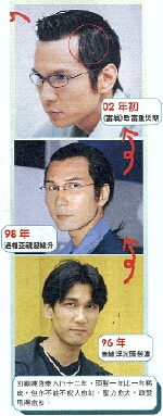 回顾陈启泰入行十二年,头发一年比一年稀疏,但亦不能不说人愈红,压力愈大,头发甩得愈多。 96年无线浮沉头发浓 98年过档亚视发线升 02年初《富翁》致富重灾期 |