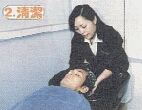 2. 清洁 检查头发后如发现头发不够清洁,会先用中心的特制洗头用品为阿Ken洗头。 |
