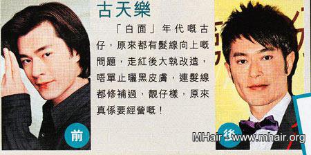 这幅是在网上很容易找到的古天乐脱发图片,发线确实好后: