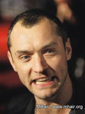 英国男星裘德·洛,以前和保罗·纽曼、汤姆·汉克斯合演“毁灭之路”,曾出现半秃头造型,当时吓坏粉丝。没想到 如今人生如戏。英国媒体早就发现裘德·洛严重掉发,据说与他交友关系复杂有关。今年他随王家卫执导“蓝莓夜”参加坎城影展,还把前面头发梳得蓬松来掩饰, 如今看来他已不想再遮掩,作好秃到底的准备。