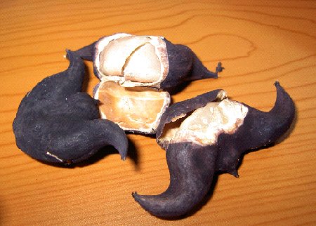 菱角 味甘、涩、性凉;抗癌,菱实的醇浸水液对癌细胞的变性和组织增生均有抑制作用。补脾益气健脾,强股膝、健力益气缓解皮肤病,辅助治疗小儿头疮、头面黄水 疮、皮肤赘疣等多种皮肤病。减肥,菱角利尿、通乳、解酒毒,是减肥的辅助食品。红菱角晒干研末,空腹服10克,红痢用老酒送下,白痢用米汤送下,治痢疾。 鲜菱蒂(菱柄),搽擦患处,一日数次,治赘疣(青年性扁平疣、多发性寻常疣)。